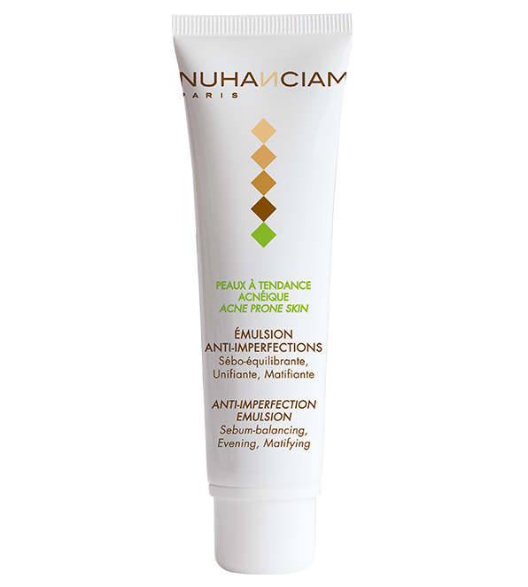 Emulsión anti imperfecciones que asegura una transformación global de la piel problemática.