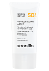 Protección solar con alta protección 50+ reafirmante y antirojeces que protege de los rayos UVA, UVB y de la luz azul a las pieles sensibles, con tendencia a rosácea y/o cuperosis.