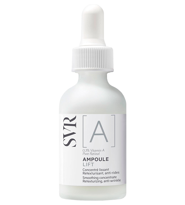 La vitamina A / retinol es un ingrediente activo antiedad líder que retexturiza la piel y corrige las arrugas profundas. Potente, un 0,3% es suficiente para renovar tu piel. SVR ha seleccionado dos formas de vitamina A, incluida una forma encapsulada, por su eficacia en todos los niveles de la epidermis y una tolerancia óptima para pieles sensibles. La combinación suaviza suavemente la superficie de la piel y regenera la epidermis. Retinol puro concentrado al 0,1% El retinol puro encapsulado al 0,2% por liposomas en la membrana fosfolipídica, similar a los de las células de la piel, se libera continuamente dentro de la epidermis.