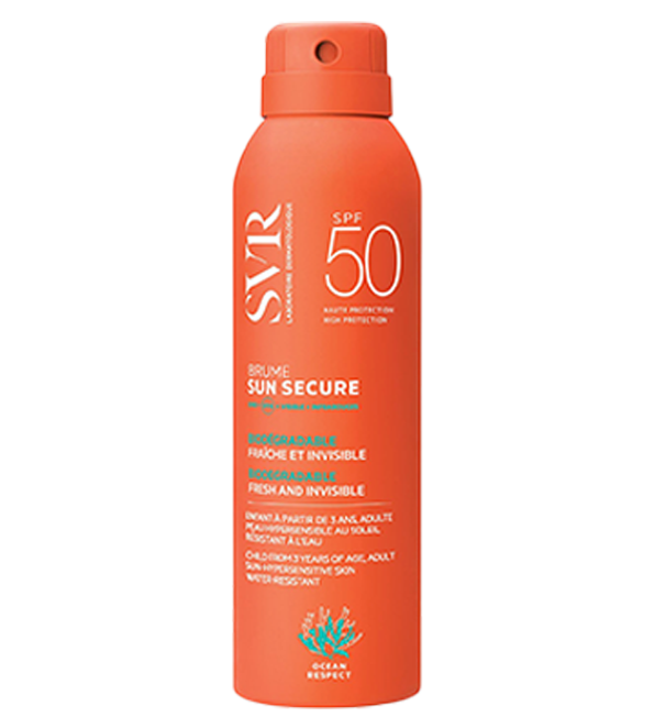 SUN SECURE Mist es el gesto de protección SPF50 + de frescura muy alta, joven y viejo, lúdico y fácil de usar, incluso en pieles mojadas. Niño a partir de 3 años, adulto.